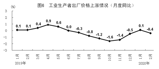 1-2月份,全国工业生产者出厂价格同比下降0.2%。分月看,1月份全国工业生产者出厂价格同比上涨0.1%,环比持平;2月份全国工业生产者出厂价格同比下降0.4%,环比下降0.5%。1-2月份,全国工业生产者购进价格同比下降0.4%。