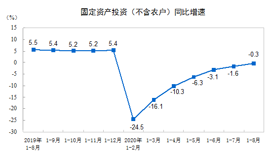 2020年1—8月份全国固定资产投资(不含农户)下降0.3%
