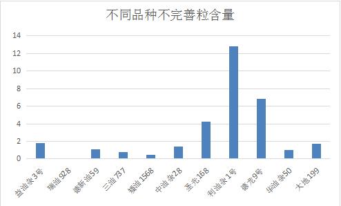 平均不完善粒为1.8%,变幅为0—12.8%。分地区和品种芥酸含量如图所示: