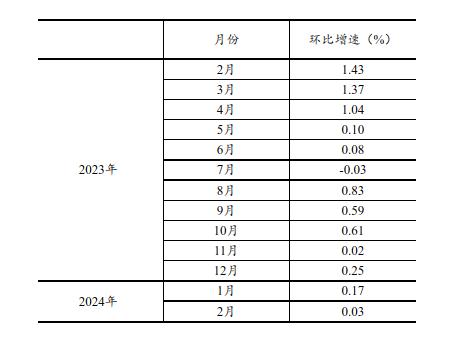 根据季节调整模型自动修正的结果,对2023年2月份以来的社会消费品零售总额环比增速进行修订。修订结果及2024年1、2月份环比数据如下: