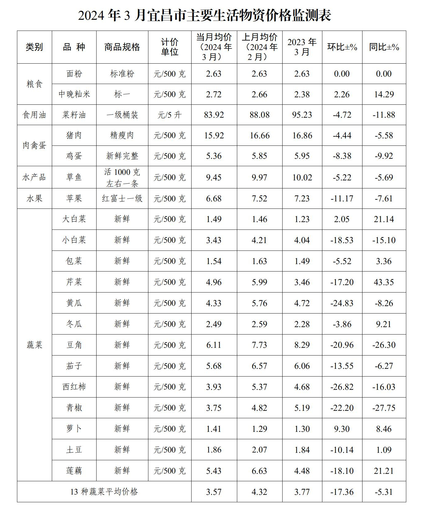 二、全市居民生活必需品市场价格监测情况