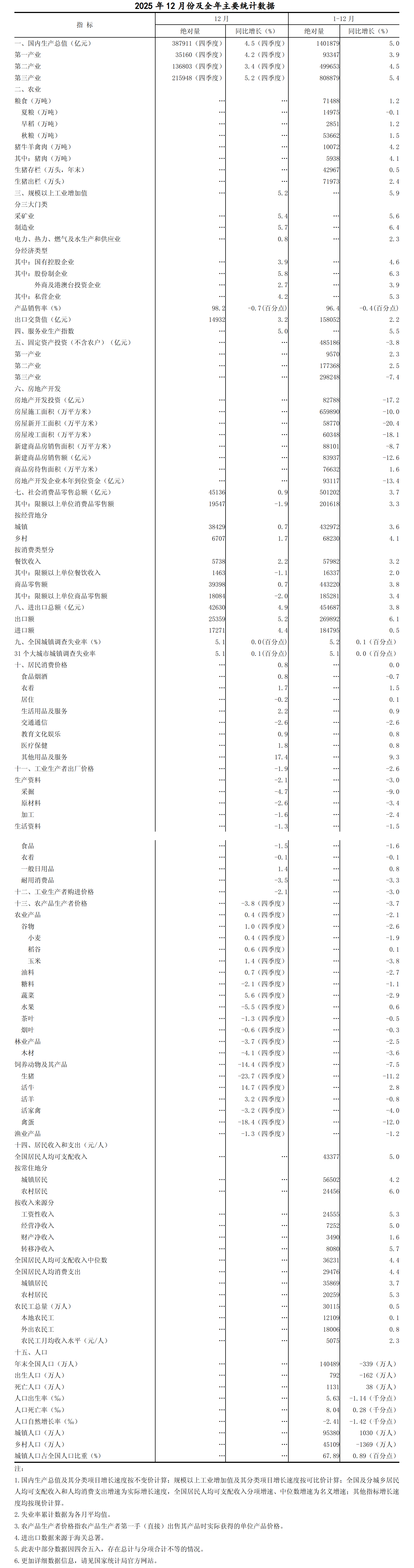 总的来看,2025年国民经济顶住多重压力保持稳中有进发展态势,高质量发展取得新成效。但也要看到,外部环境变化影响加深,国内供强需弱矛盾突出,经济发展中老问题、新挑战仍然不少。下阶段,要坚持以习近平新时代中国特色社会主义思想为指导,全面贯彻落实党的二十大、二十届历次全会精神和中央经济工作会议部署要求,坚持稳中求进、提质增效,实施更加积极有为的宏观政策,持续扩大内需、优化供给,做优增量、盘活存量,因地制宜发展新质生产力,纵深推进全国统一大市场建设,推动经济实现质的有效提升和量的合理增长,确保“十五五”开好局、起好步。