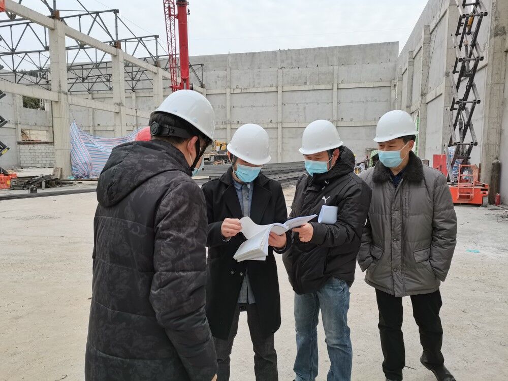 宜昌市军民融合军粮区域配送中心项目是宜昌粮食集团践行粮食安全主体责任的重要抓手,李组长强调:一要精心施工,保证工程高质量;二要细心管理,确保安全施工全过程;三是要用心管控,严守疫情防控各项要求。