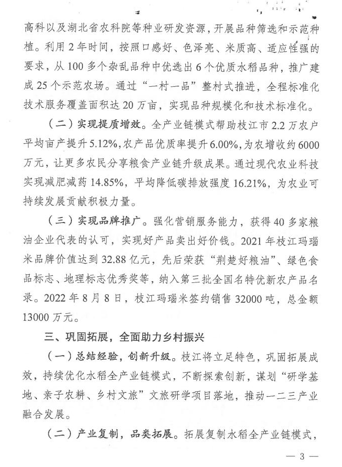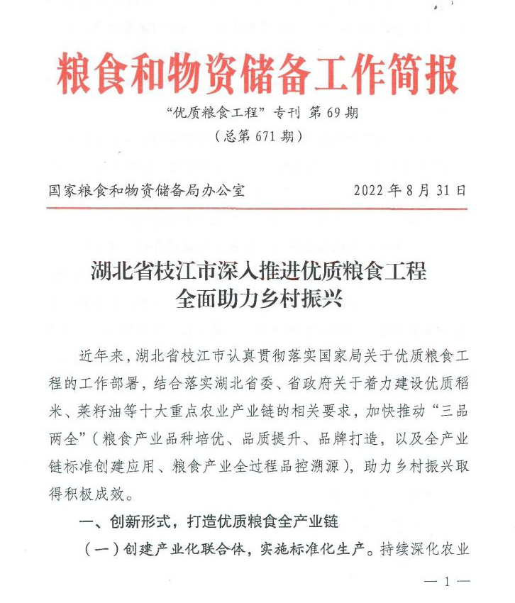 枝江市深入推进优质粮食工程全面助力乡村振兴